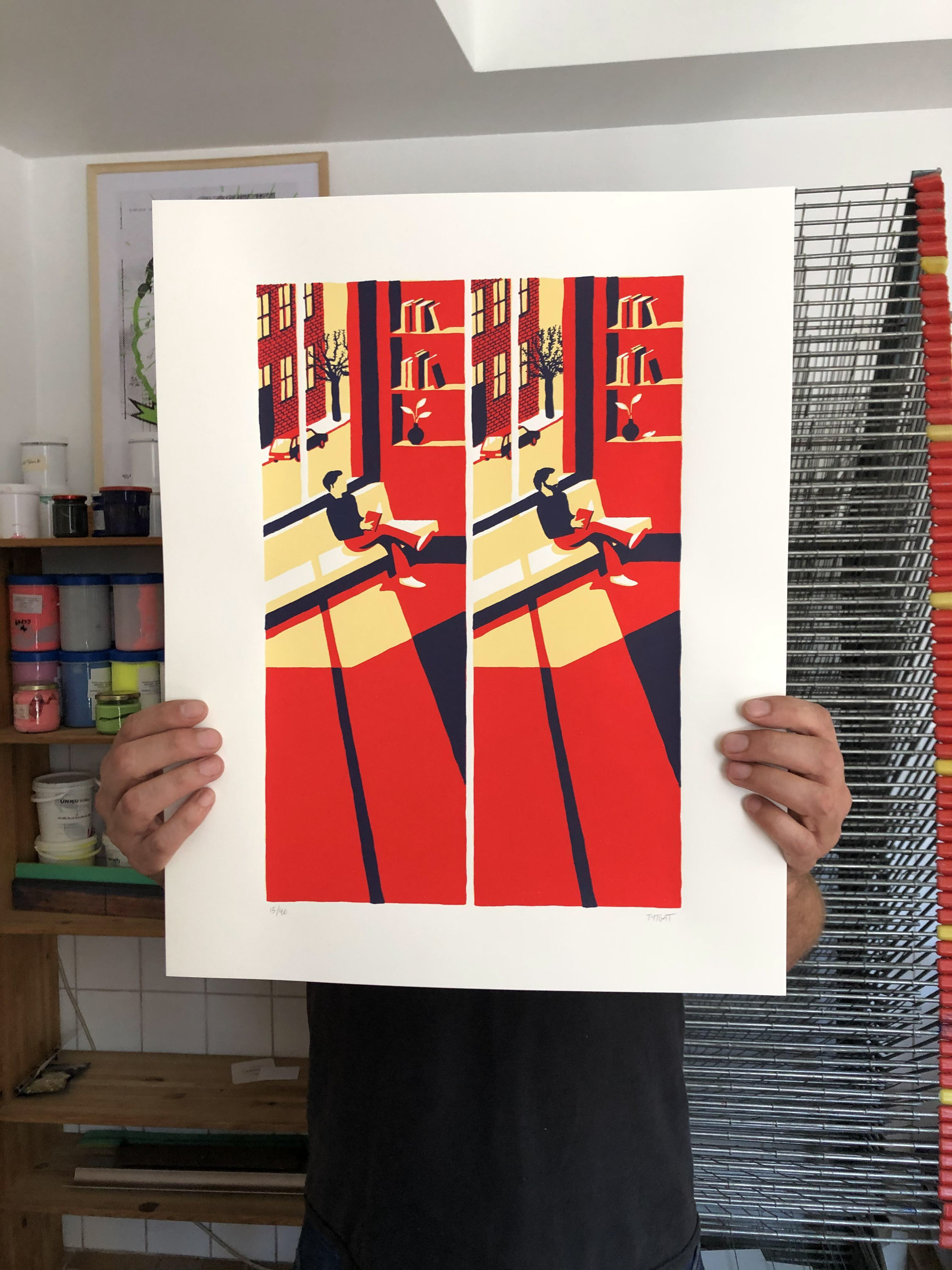 Sérigraphie trois couleurs, 50x40, tirée à 40 exemplaires.