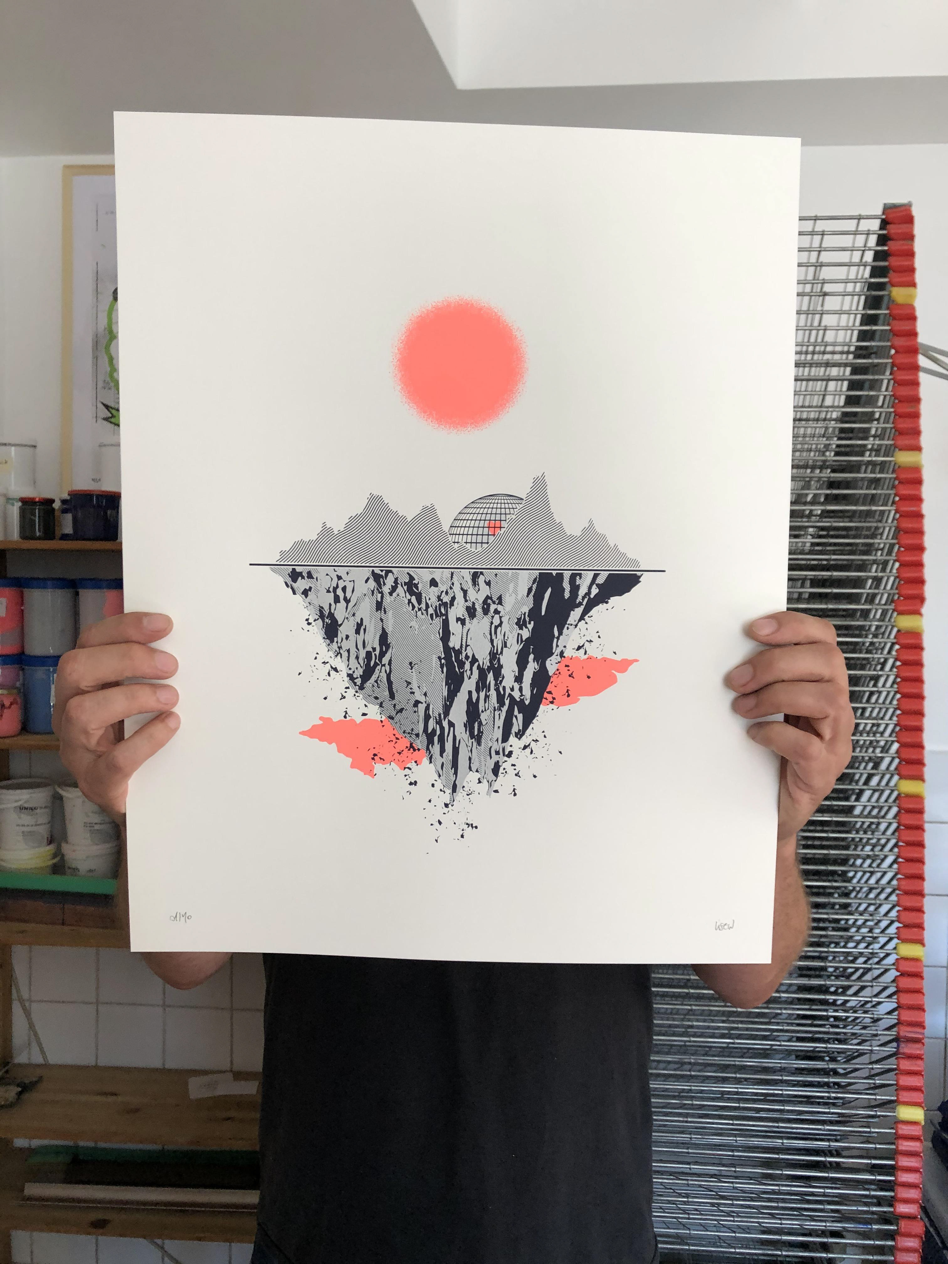 Sérigraphie trois couleurs, 50x40, tirée à 40 exemplaires.
