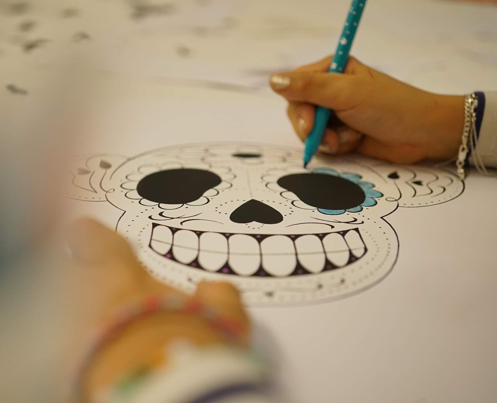 C'est Halloween au Centre Pompidou Metz. Atelier de confection de masques phosphorescents d'après une illustration de Nicolas Moog avec les copains