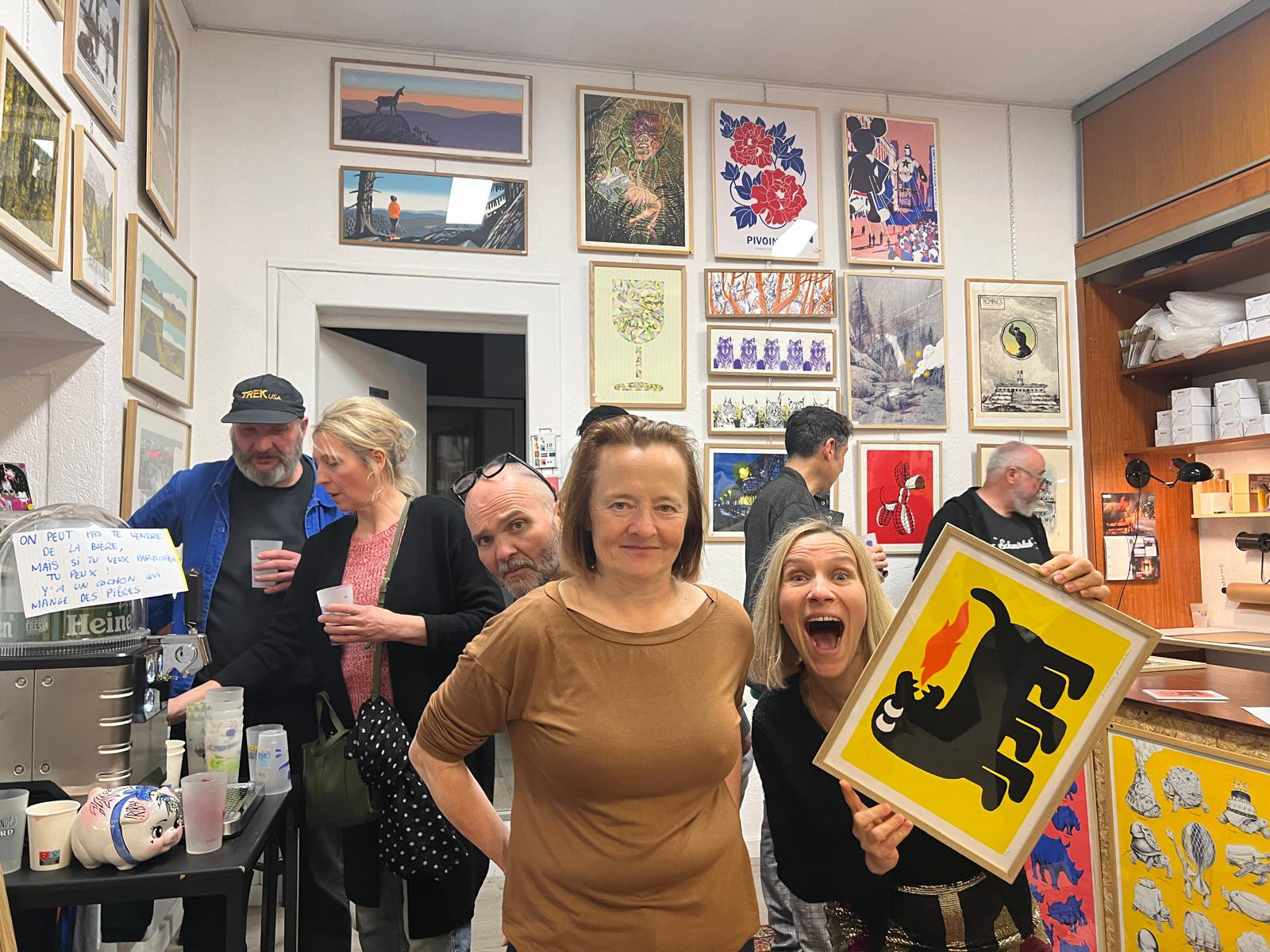 GENEVIèVE GAUCKLER est créatrice d’images. Diplômée de l’École Nationale Supérieure des Arts Décoratifs de Paris en 1991, elle pratique le design graphique en réalisant des pochettes de disques (Laurent Garnier, Saint Germain, Etienne Daho). Elle travaille aussi dans l’édition puis l’animation puis se dirige plutôt vers l’illustration. C’est avec la création de personnages qu’elle trouve sa voie. Ses collages photographiques ou ses bonshommes noirs énigmatiques s’affichent dans de nombreux magazines ou dans des publicités. Elle vit et travaille désormais à Lyon, sa ville natale; elle y crée de nouveaux personnages, apprend la sérigraphie, toujours avide d’explorer de nouveaux territoires stylistiques.