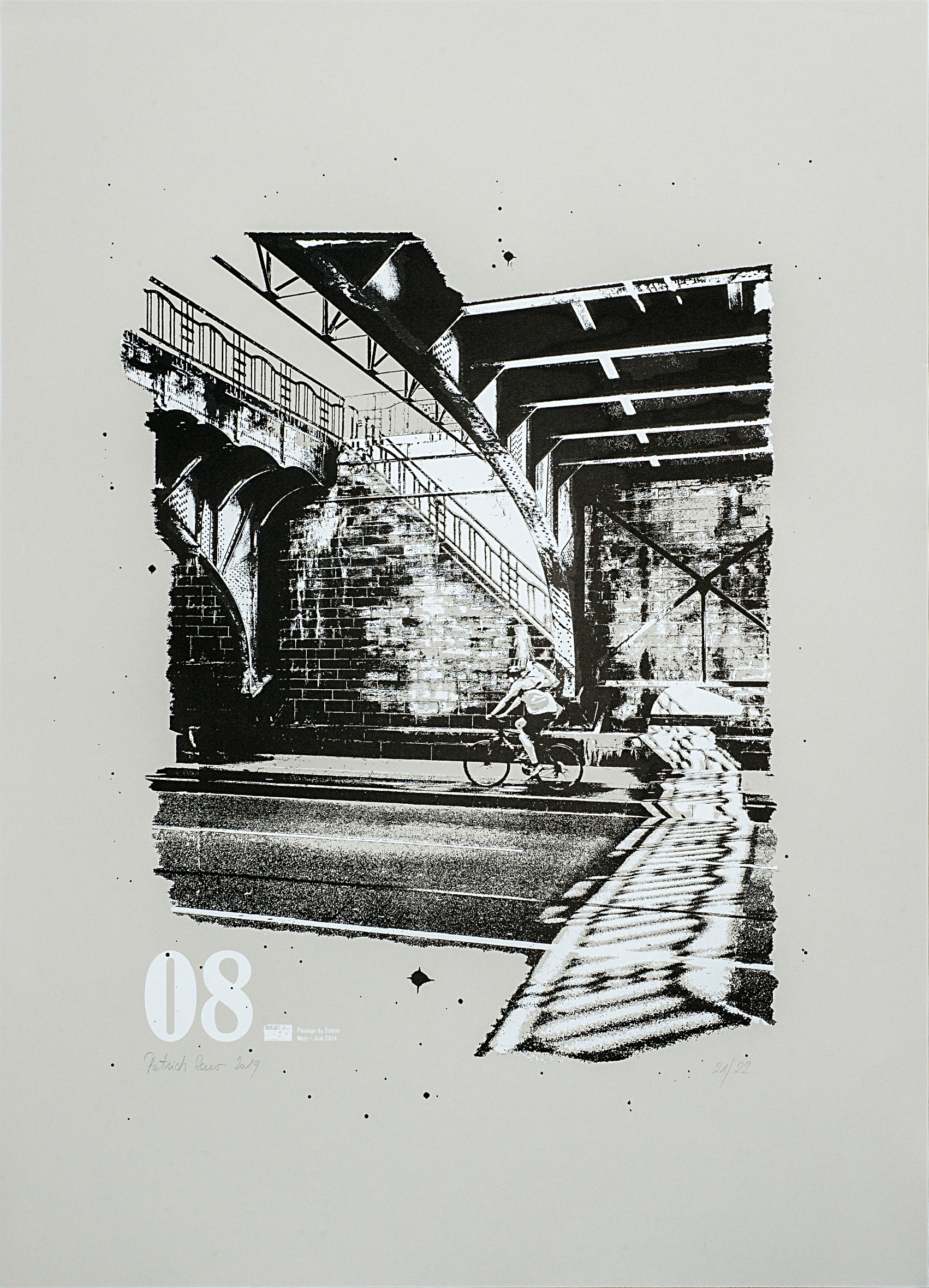 . "Passage du Sablon". Impression deux couleurs sur papier pop set virgin pulp tourterelle 250g. 22 tirages signés et numérotés, format 50x70 cm.