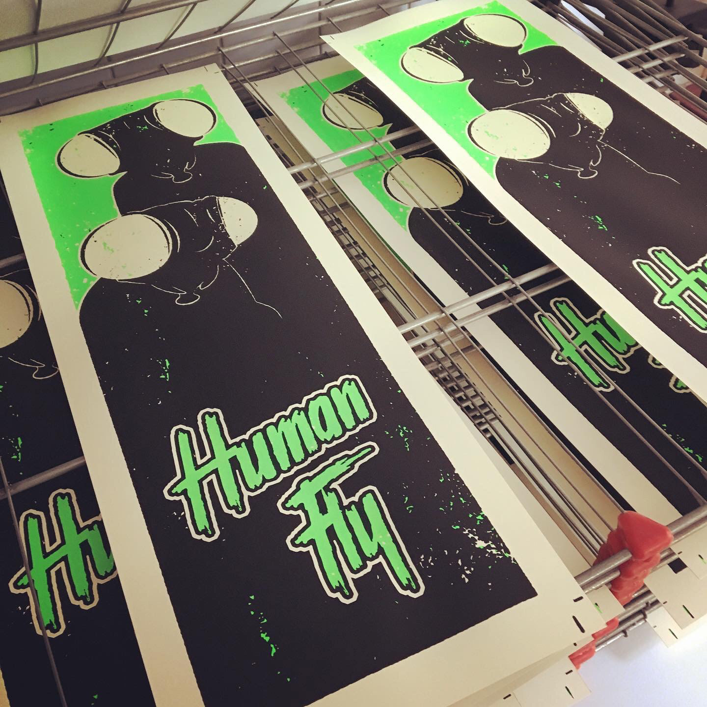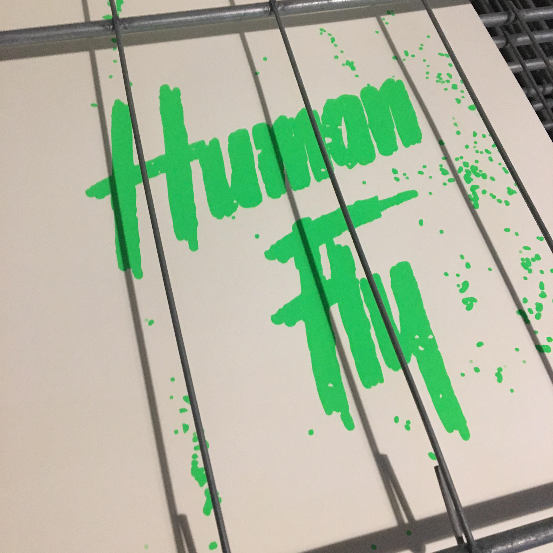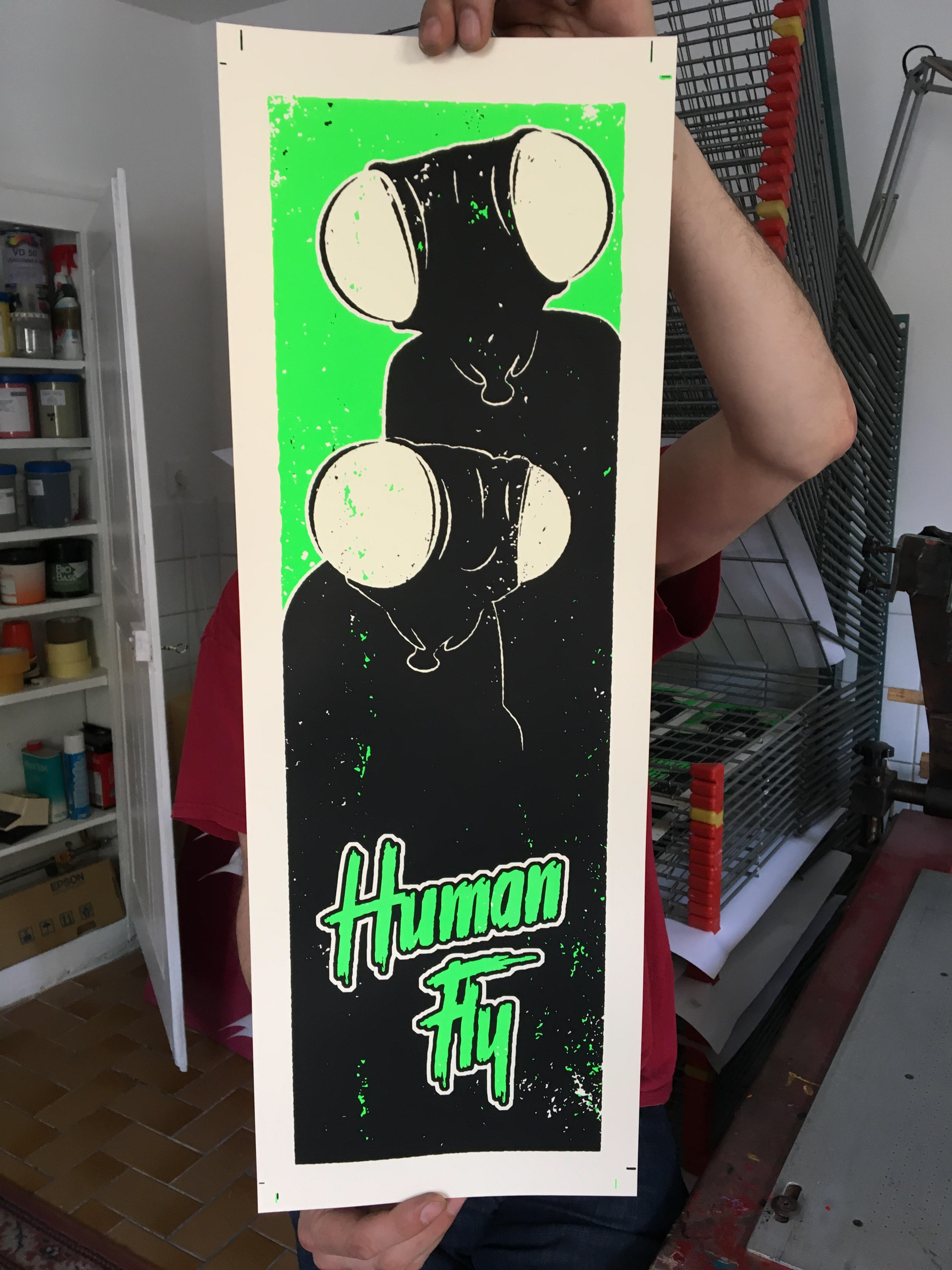. Impression trois passages : phosphorescent/vert fluo/noir, format 20x60 cm, 38 exemplaires.