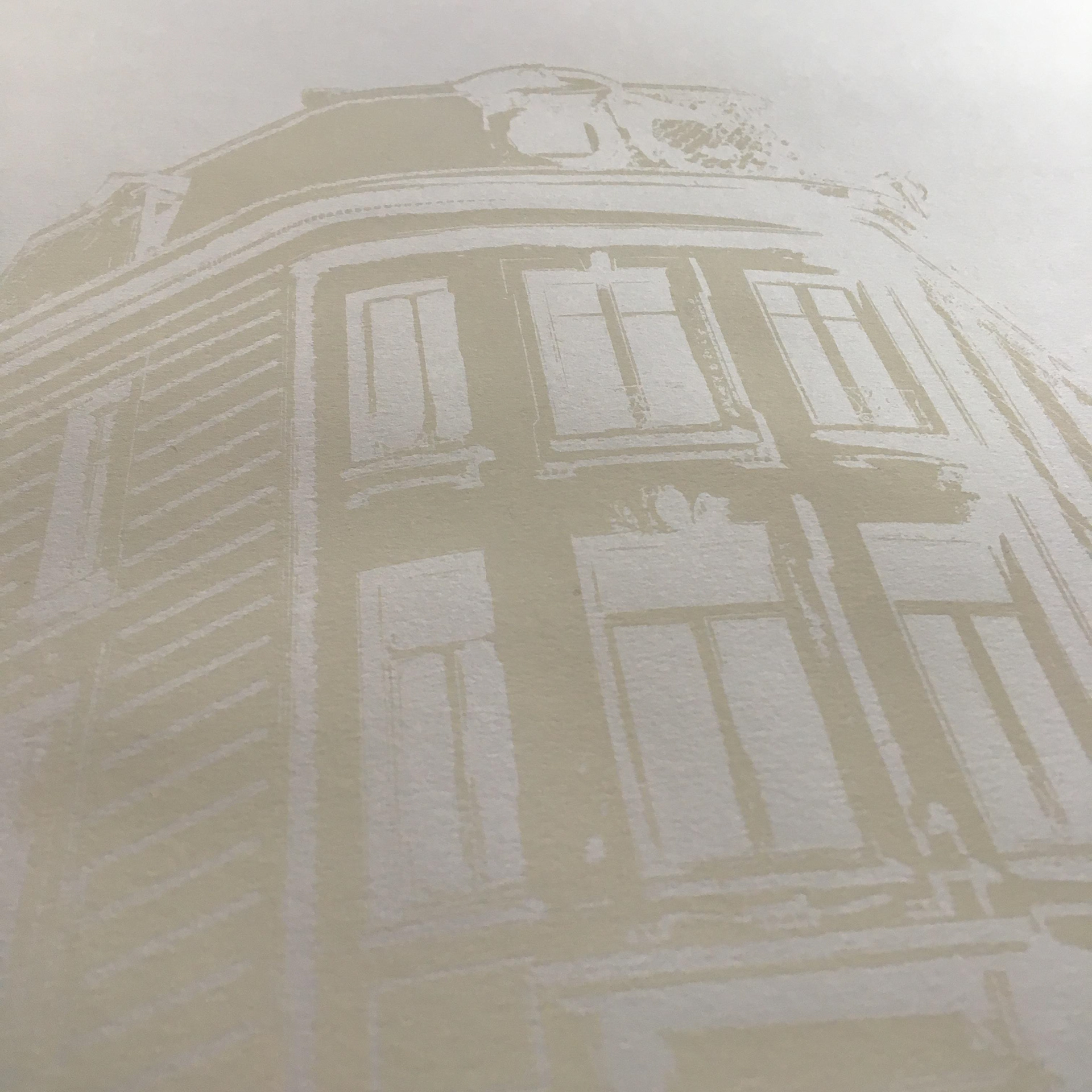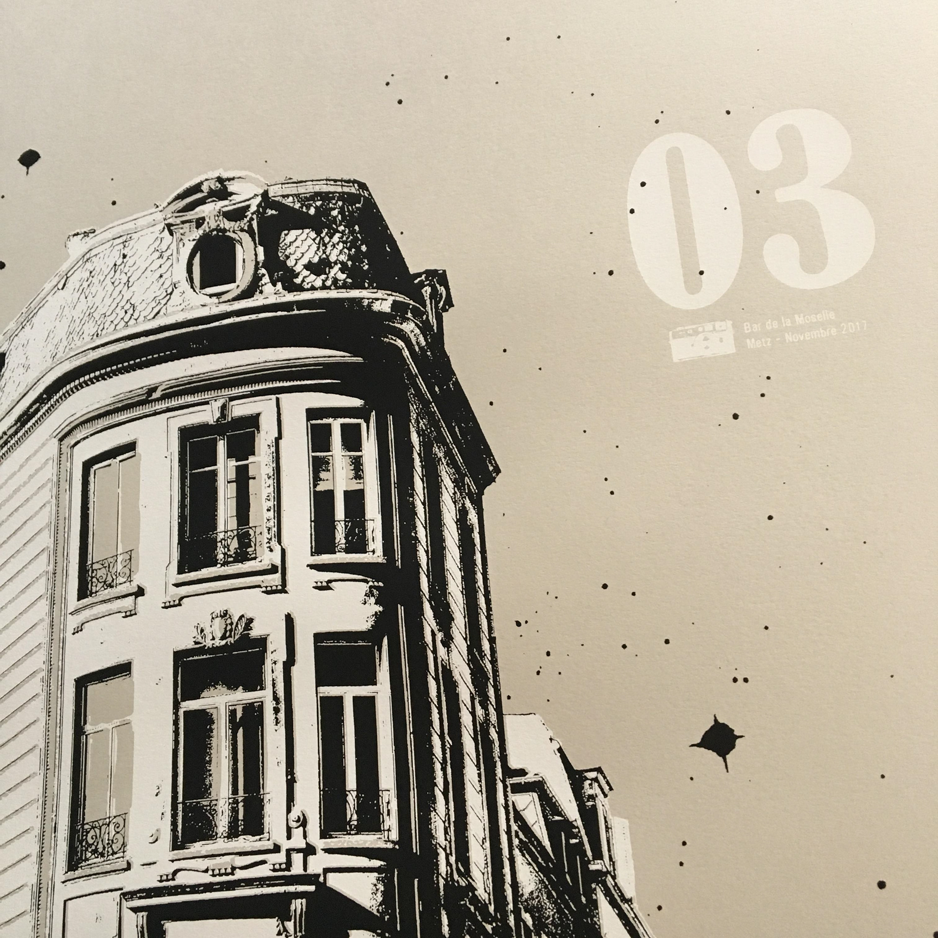 . Impression deux couleurs sur papier pop set virgin pulp tourterelle 250g. 24 tirages signés et numérotés, format 50x70 cm.