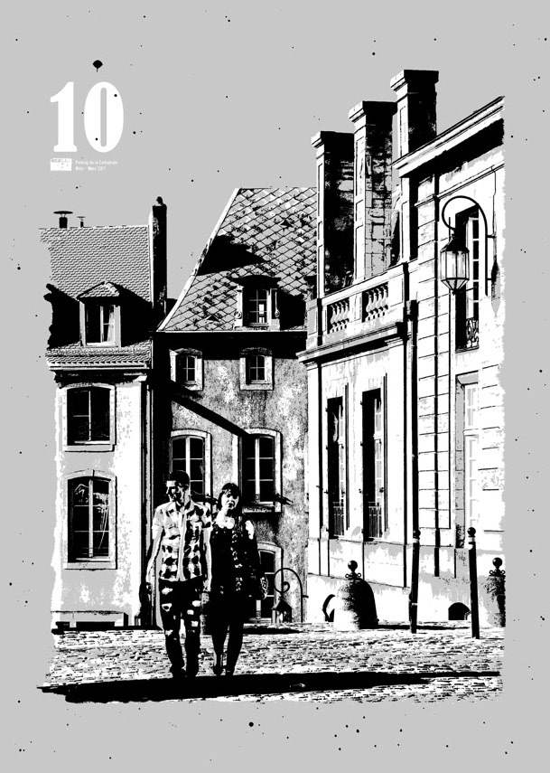 . "Place Saint-Etienne". Impression deux couleurs sur papier pop set virgin pulp tourterelle 250g. 22 tirages signés et numérotés, format 50x70 cm.